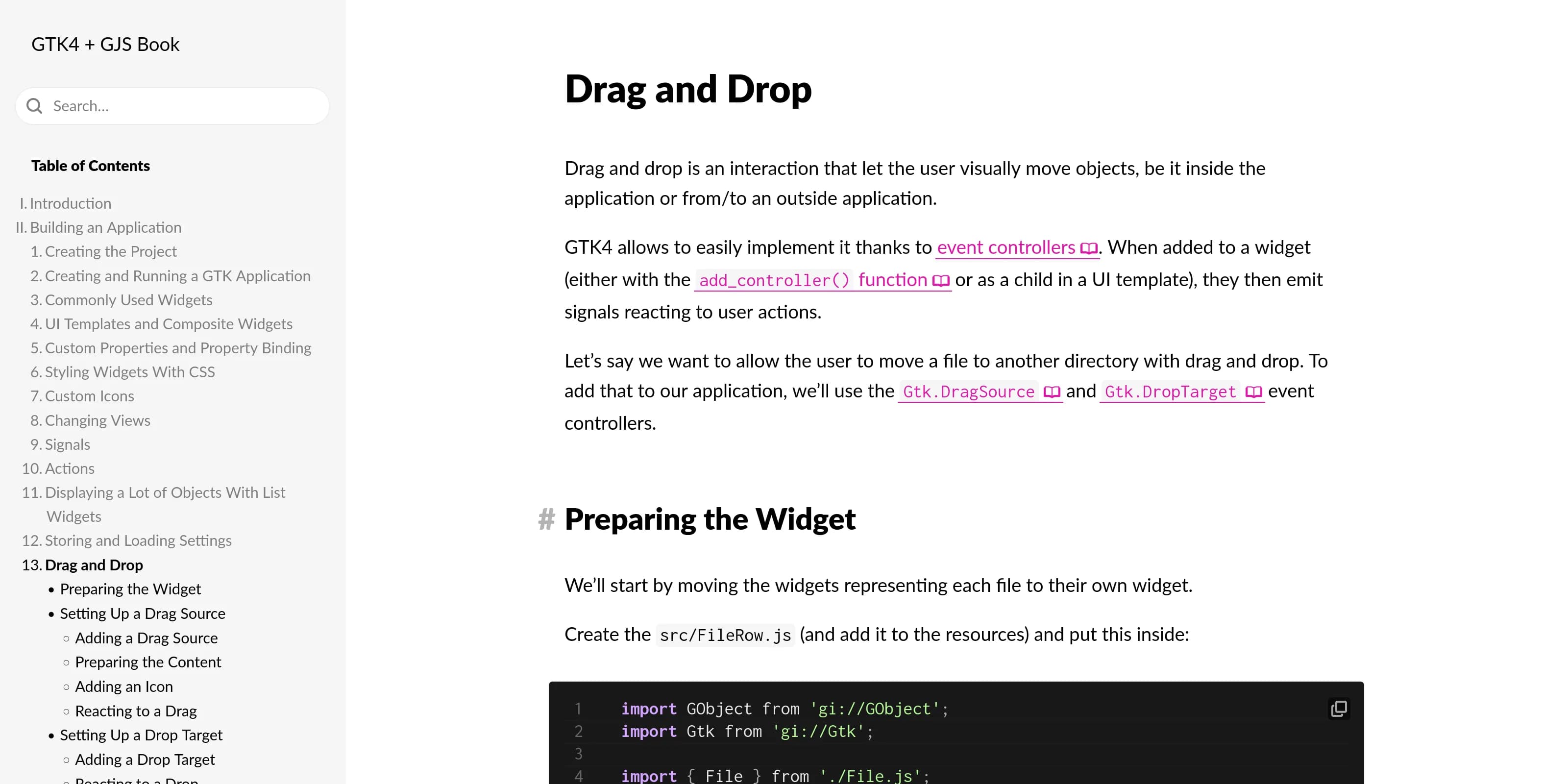 Livre en ligne, dont je suis l’auteur, présentant la création d’applications de bureau GTK avec l’environnement GJS. Le site est construit avec Hugo à partir de modèles HTML pour la structure et de fichiers Markdown pour le contenu. Bien qu’il soit statique, il est possible de rechercher dynamiquement des termes dans tout le texte. Il est déployé en intégration continue sur GitLab Pages.